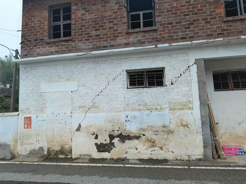 天基觀測結果與實勘完全對應,錳礦開采區(qū)域所處房屋發(fā)生大面積開裂,當?shù)卮迕穹从常悍课莸牧芽p開展時間主要發(fā)生在十多年前,近幾年裂縫已幾乎不再發(fā)展